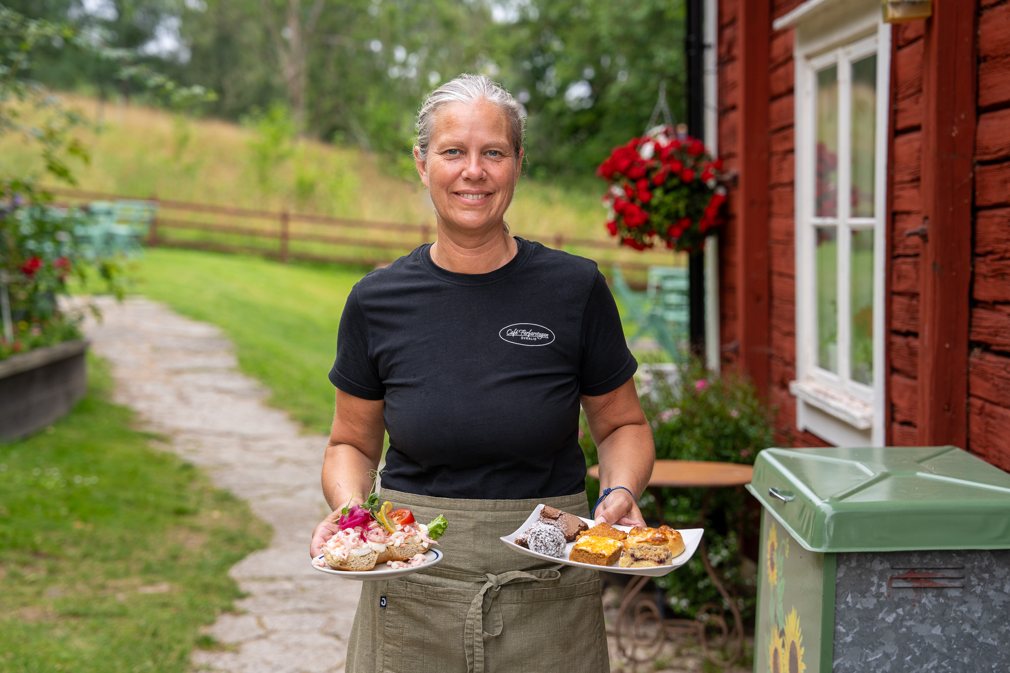 Vi serverar nygräddade våfflor, lättare mat, matiga smörgåsar, sallader samt hembakat fikabröd och olika drycker.